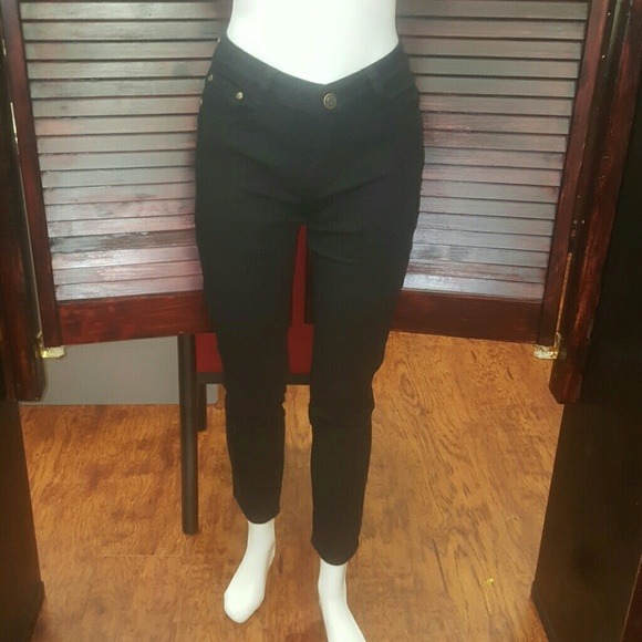 Black skinny leg jeans sexy stretch fit with grey stitching design on pockets
