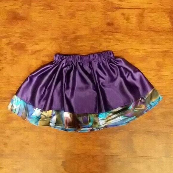 Handmade Pretty purple satin mini skirt lined in sky blue print