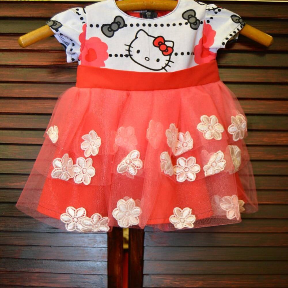 Cute Fun Hello Kitty baby dress with floral appliques in tulle skirt