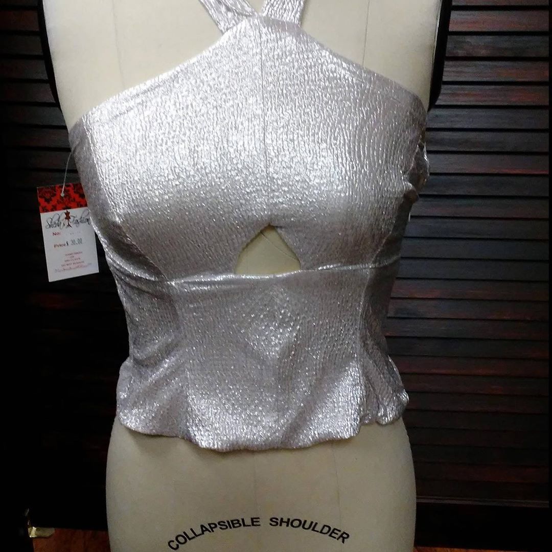 #GoingOutOutfit #HalterTop #RaveShirt #ClubTop #OpenBackTop #PartyTop #holographic #KeyholeFront #SilverShirt #StrappyTop (at Sheda’s Fashion)
